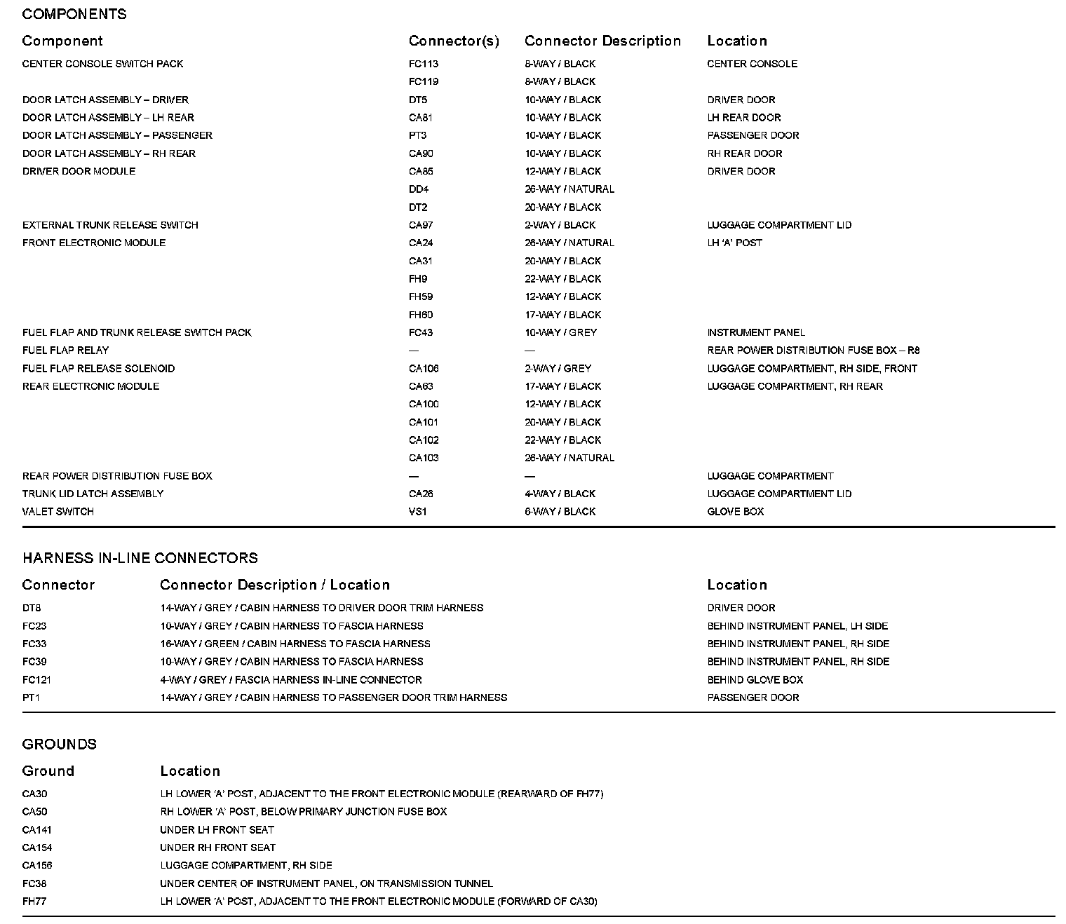 Locations: The location views for Ground Points, In-Line Harnesses, and Control Modules depicted within these diagrams can be found at Vehicle/Locations. Locations