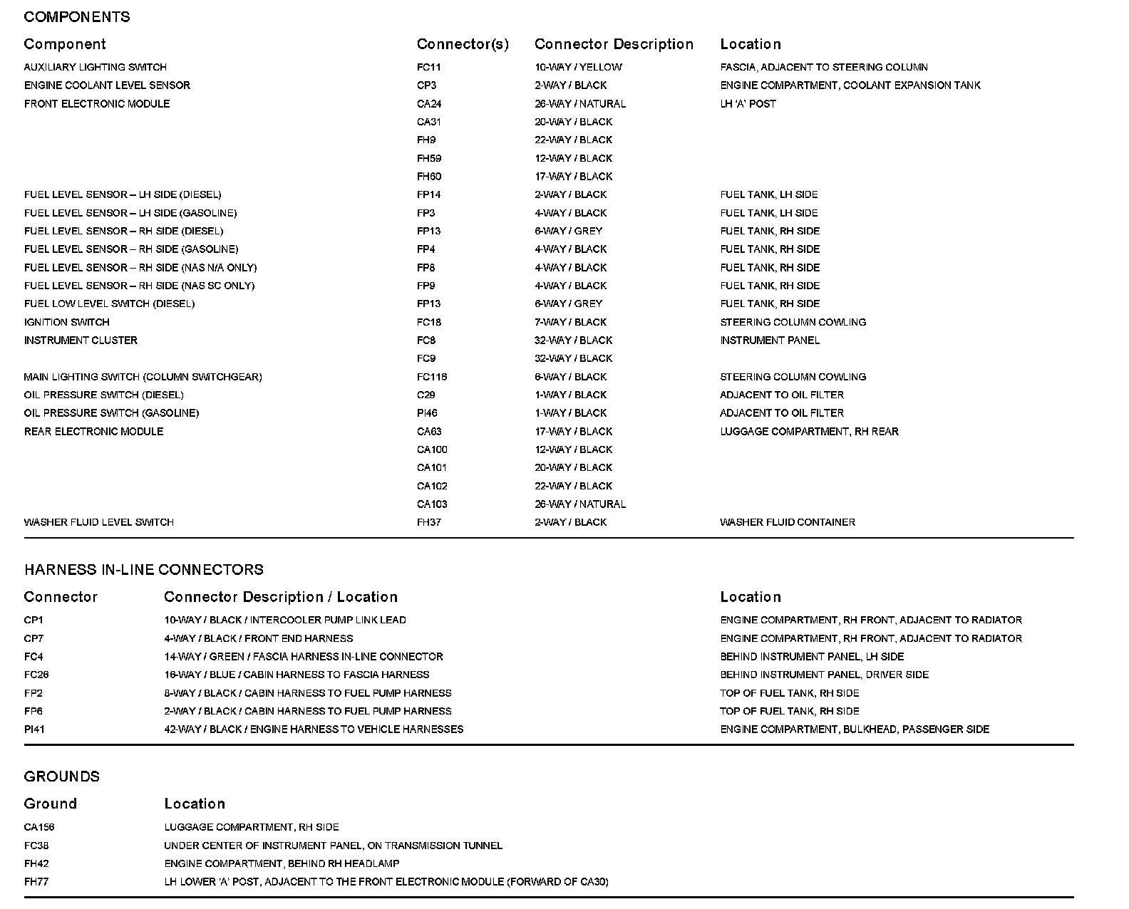 Locations: The location views for Ground Points, In-Line Harnesses, and Control Modules depicted within these diagrams can be found at Vehicle/Locations. Locations