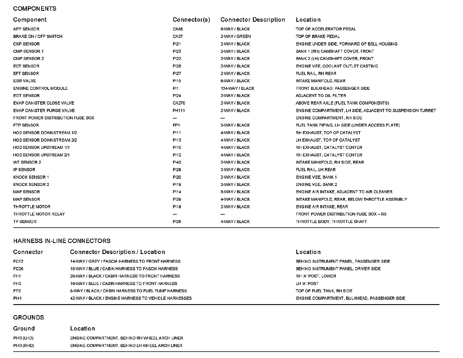 Locations: The location views for Ground Points, In-Line Harnesses, and Control Modules depicted within these diagrams can be found at Vehicle/Locations. Locations