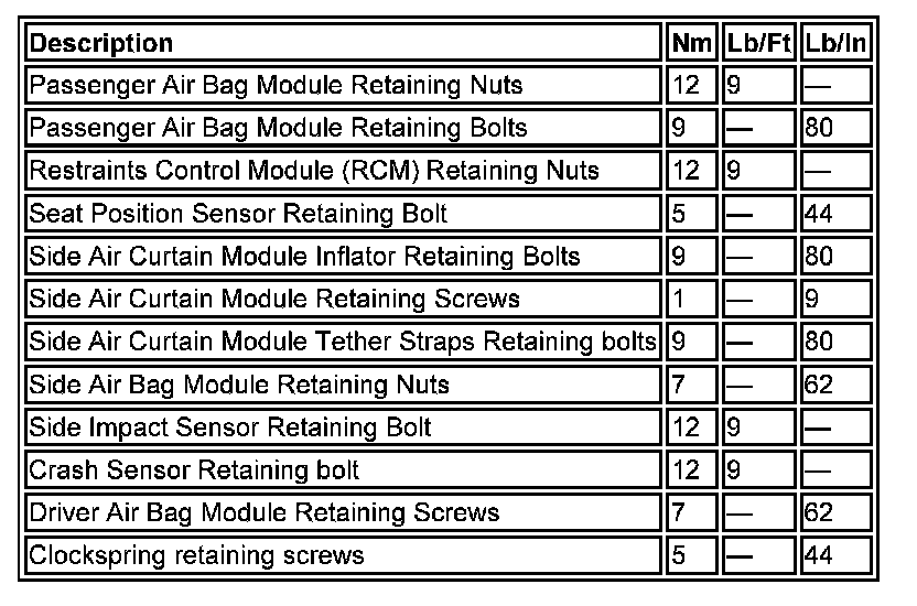 Air Bag Systems: Specifications