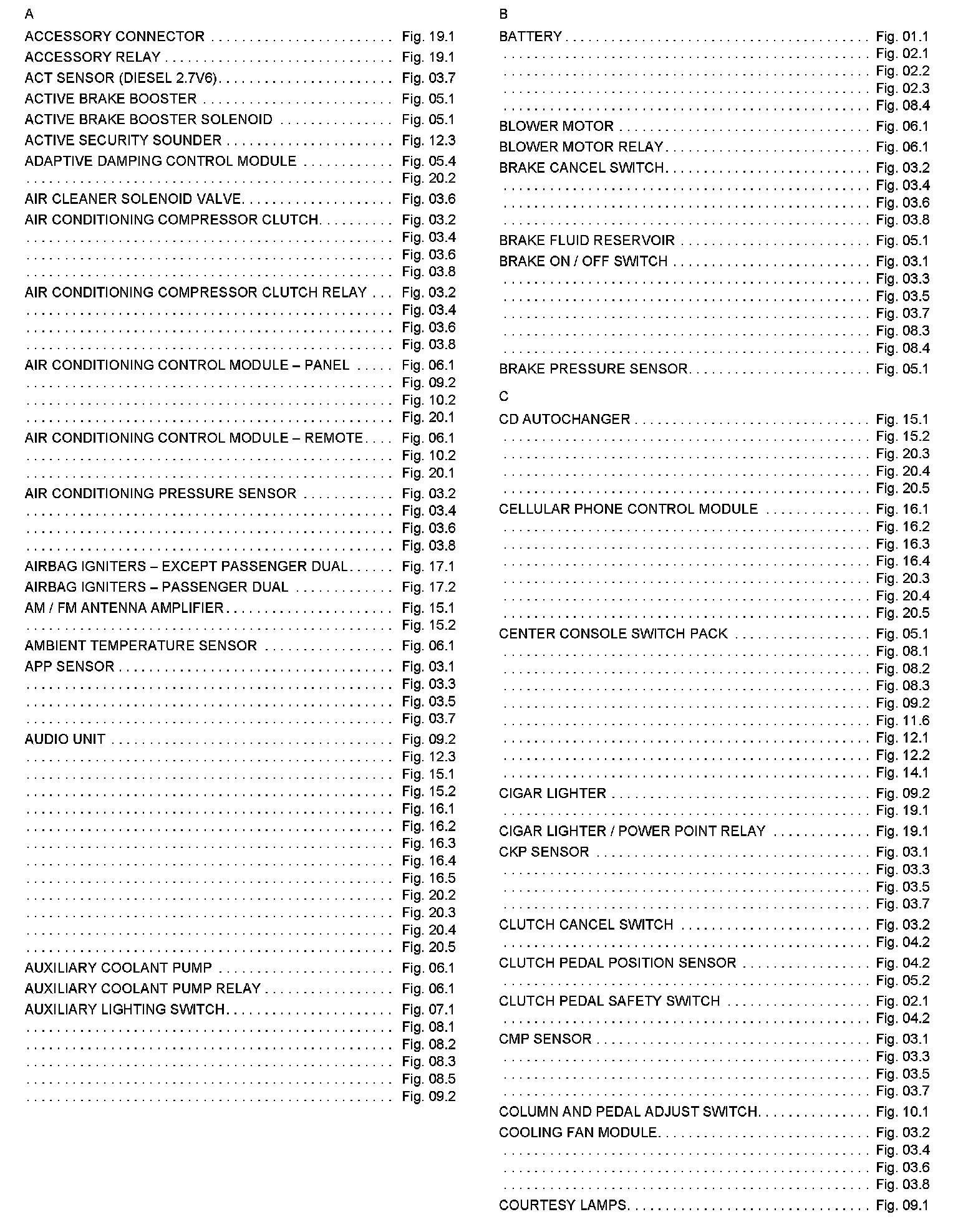 If a link on the index to a specific diagram listed therein is not provided, that means that the diagram in question does NOT apply to the vehicle model selected.