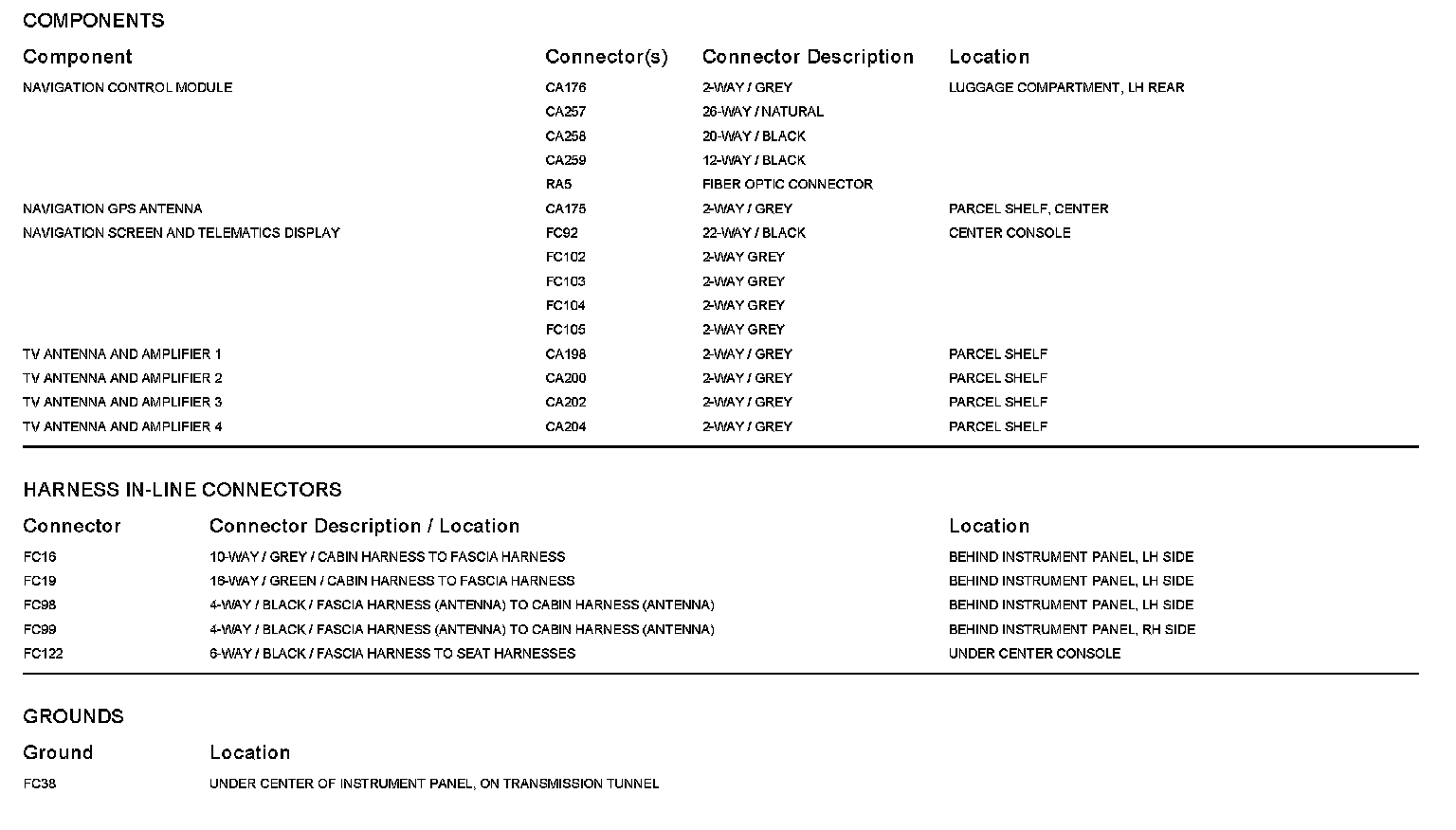 Locations: The location views for Ground Points, In-Line Harnesses, and Control Modules depicted within these diagrams can be found at Vehicle/Locations. Locations