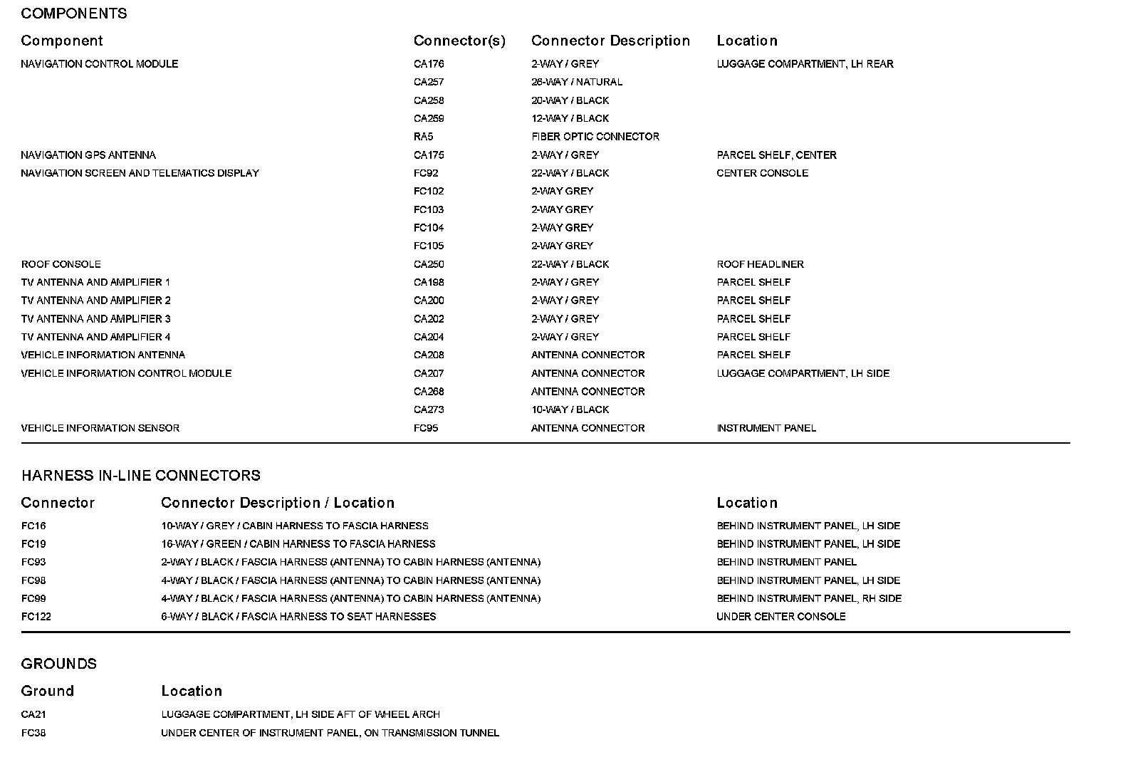 Locations: The location views for Ground Points, In-Line Harnesses, and Control Modules depicted within these diagrams can be found at Vehicle/Locations. Locations