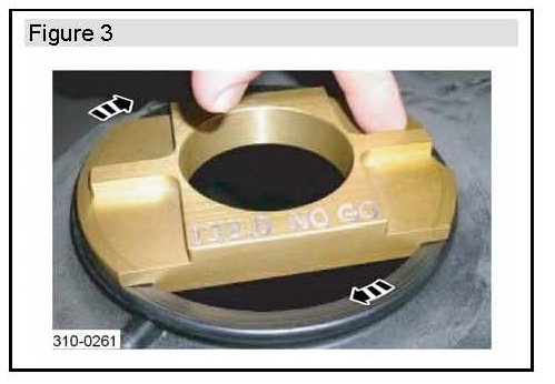6. If the NO GO gauge drops of its own weight into the fuel pump opening at any time, go to bulletin section "Replacement Fuel Tank Installation" and install a new tank. (Figure 7)
