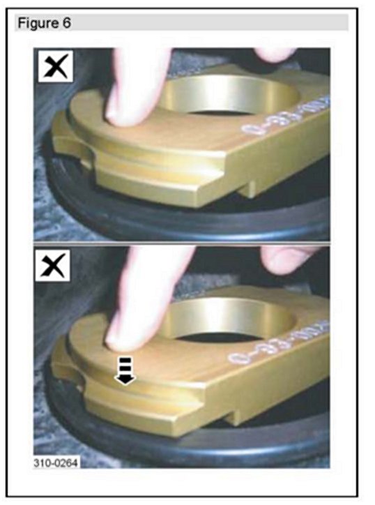 10. *Insert the NO_GO gauge without applying downward pressure as outlined in Step 3 above* to measure the transfer pump opening as follows: