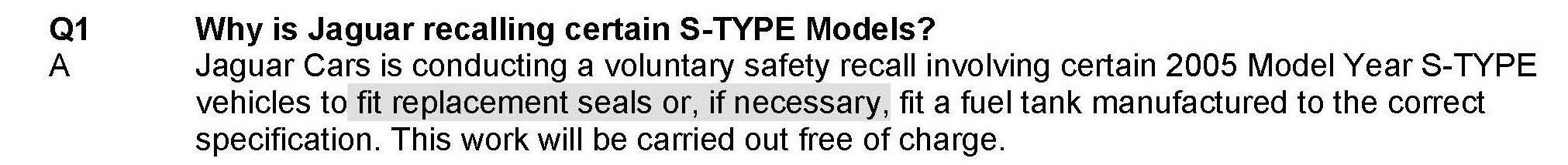 Recall - Fuel Tank Repair/Replacement