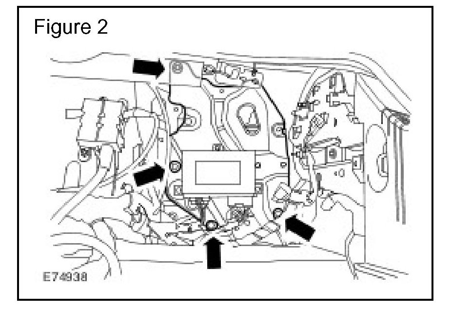 15. Install the four rear ECM bolts and tighten to 10 Nm (7.5 lbf-ft). (Figure 2)