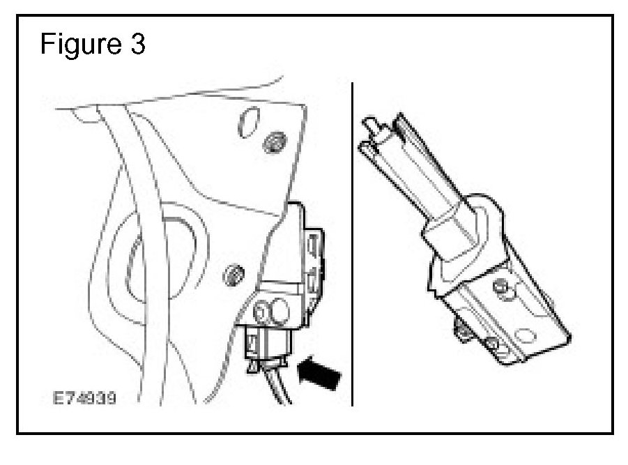 12. Install the fuel filler door release actuator assembly, with modified locking pin tip, to the vehicle, ensuring the two clips engage fully. (Figure 3)