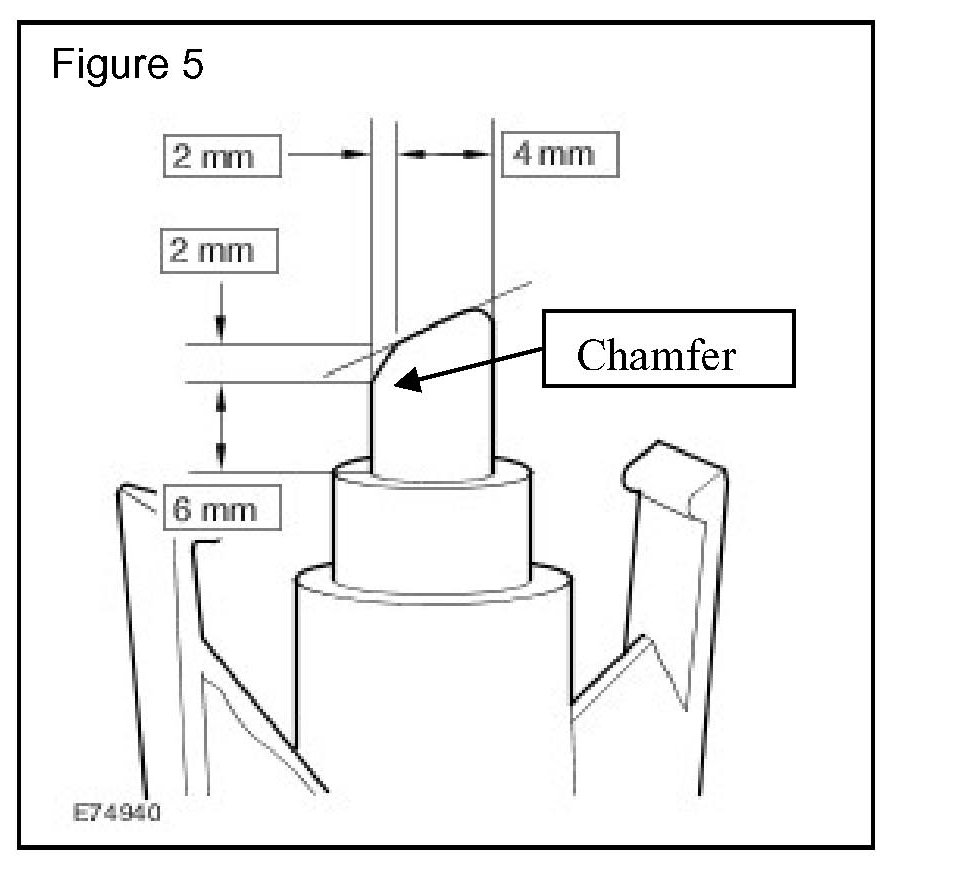 ^ Using either a sharp blade or file, chamfer the tip of the locking pin to the dimensions illustrated in Figure 5.