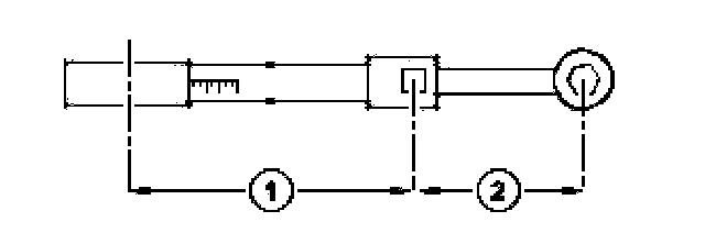 Step 2. Add the effective length of the special tool (2) to the effective length of the torque wrench (1).