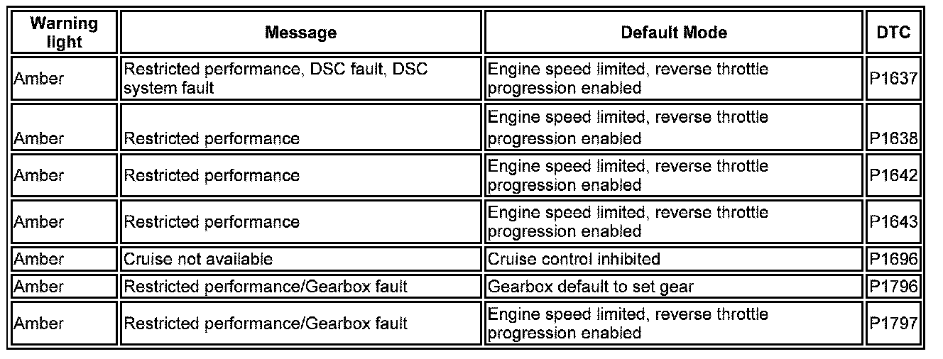 Use this table to identify DTCs associated with the message center display, then refer to the DTC index for possible sources and actions.