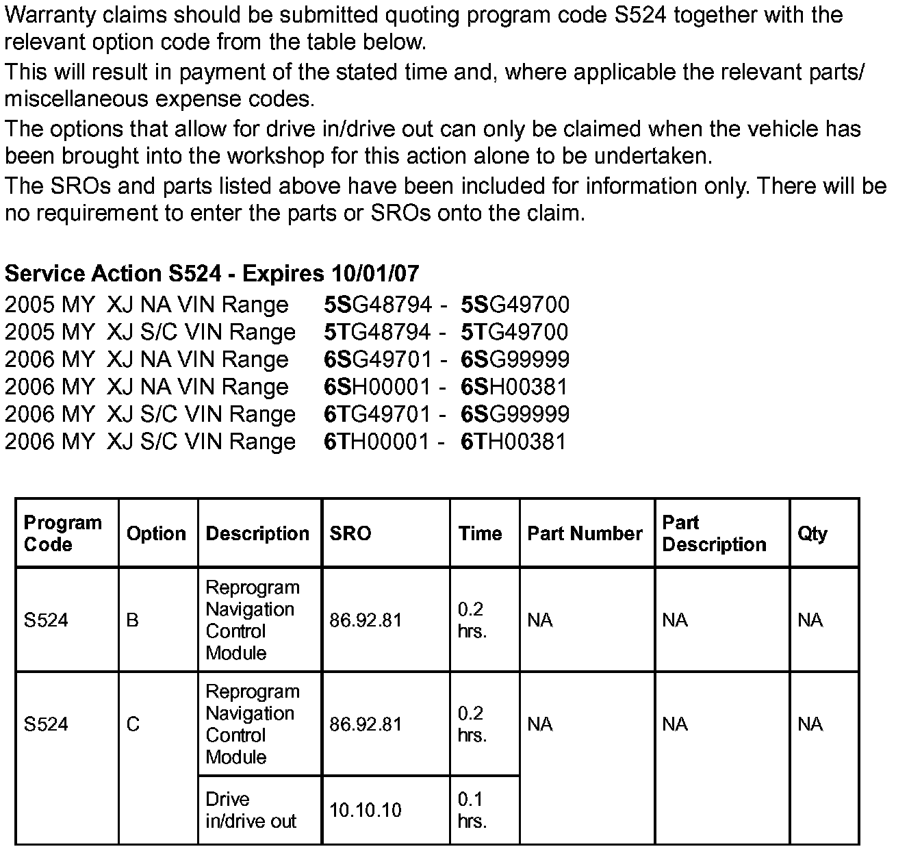 Remove and destroy Bulletin XJ419-S524, dated 10/05. Replace with this Bulletin.
