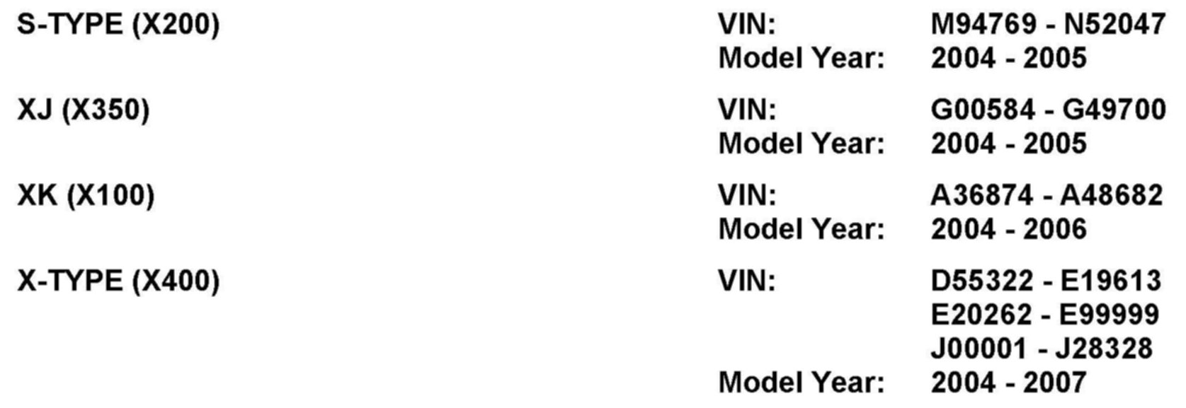 AFFECTED VEHICLE RANGE
