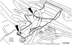 7. Slacken and remove RH water deflector securing bolt and remove deflector.