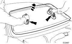 12. Fit lifting handles and with assistance, carefully position windshield in aperture aligning glass with body markings and press firmly into place.