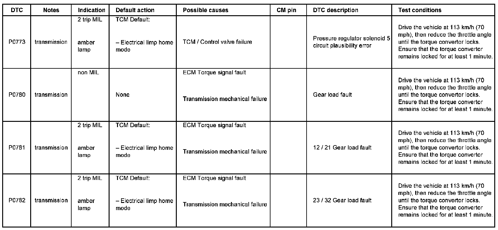 DTC P0773 - P0782: