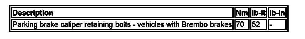 Parking Brake System: Specifications