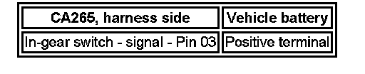 Electric parking brake module connector 1 connector, CA265 disconnected. 3. Key on, engine off. 4. Measure the resistance between: