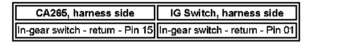 In-Gear (IG) switch connector, GB03 disconnected. 2. Measure the resistance between: