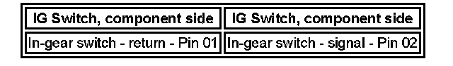 In-gear (IG) switch connector, GB03 disconnected. 2. Measure the resistance between: