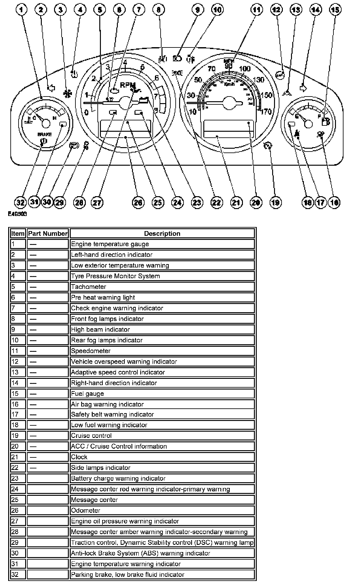 Instrument Panel, Gauges and Warning Indicators