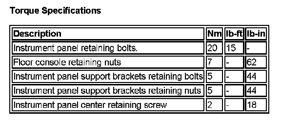 Dashboard / Instrument Panel: Specifications