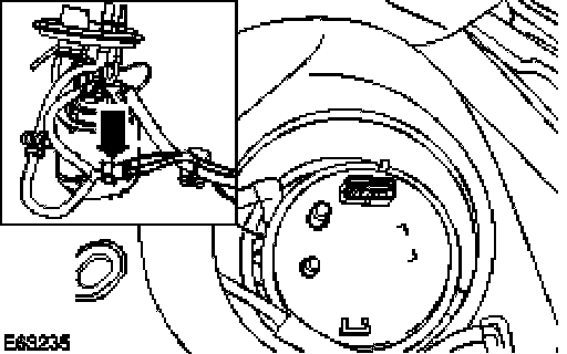 - Detach the fuel pump module wiring harness from the retaining bracket.