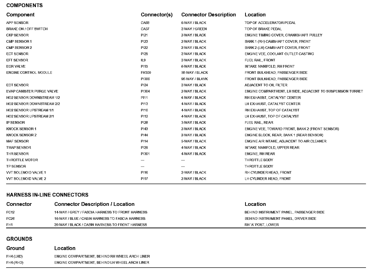 Locations: The location views for Ground Points, In-Line Harness Connectors, Harnesses, and Control Modules depicted within these diagrams can be found at Vehicle/Locations. Locations