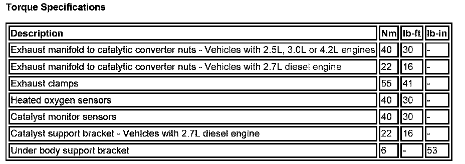 Torque Specifications:
