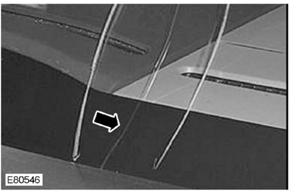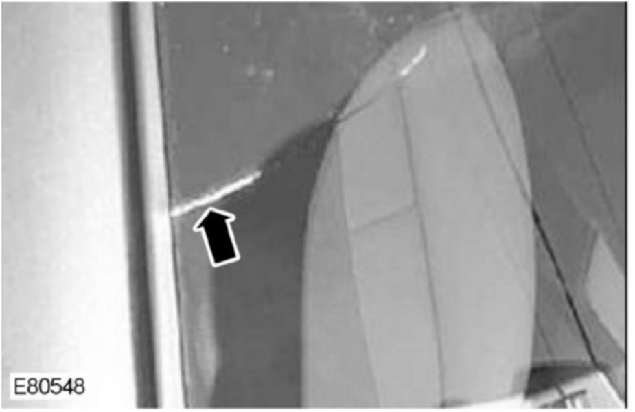 3. If visual inspection and pen test do not show surface damage point a flashlight at a 45 degree angle along the cracks in the black painted area of the windshield (see illustration E80543 in step 7).