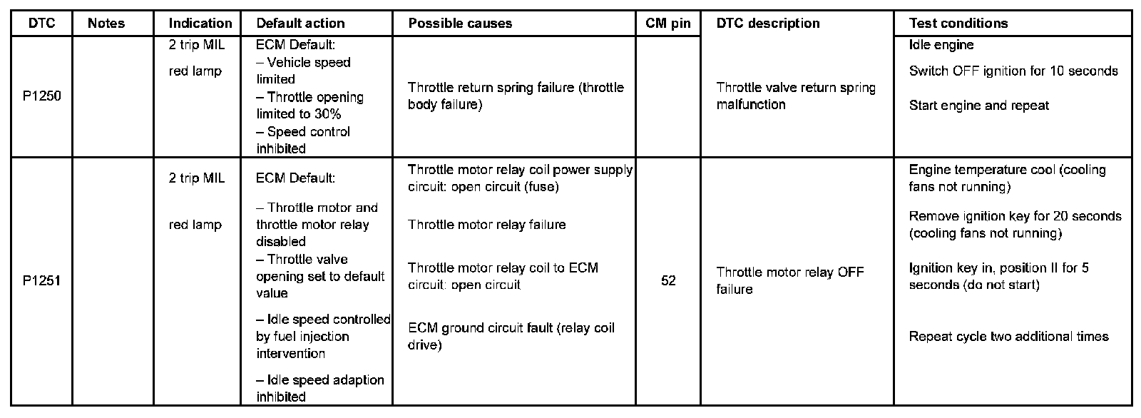 DTC P1250 - P1251: