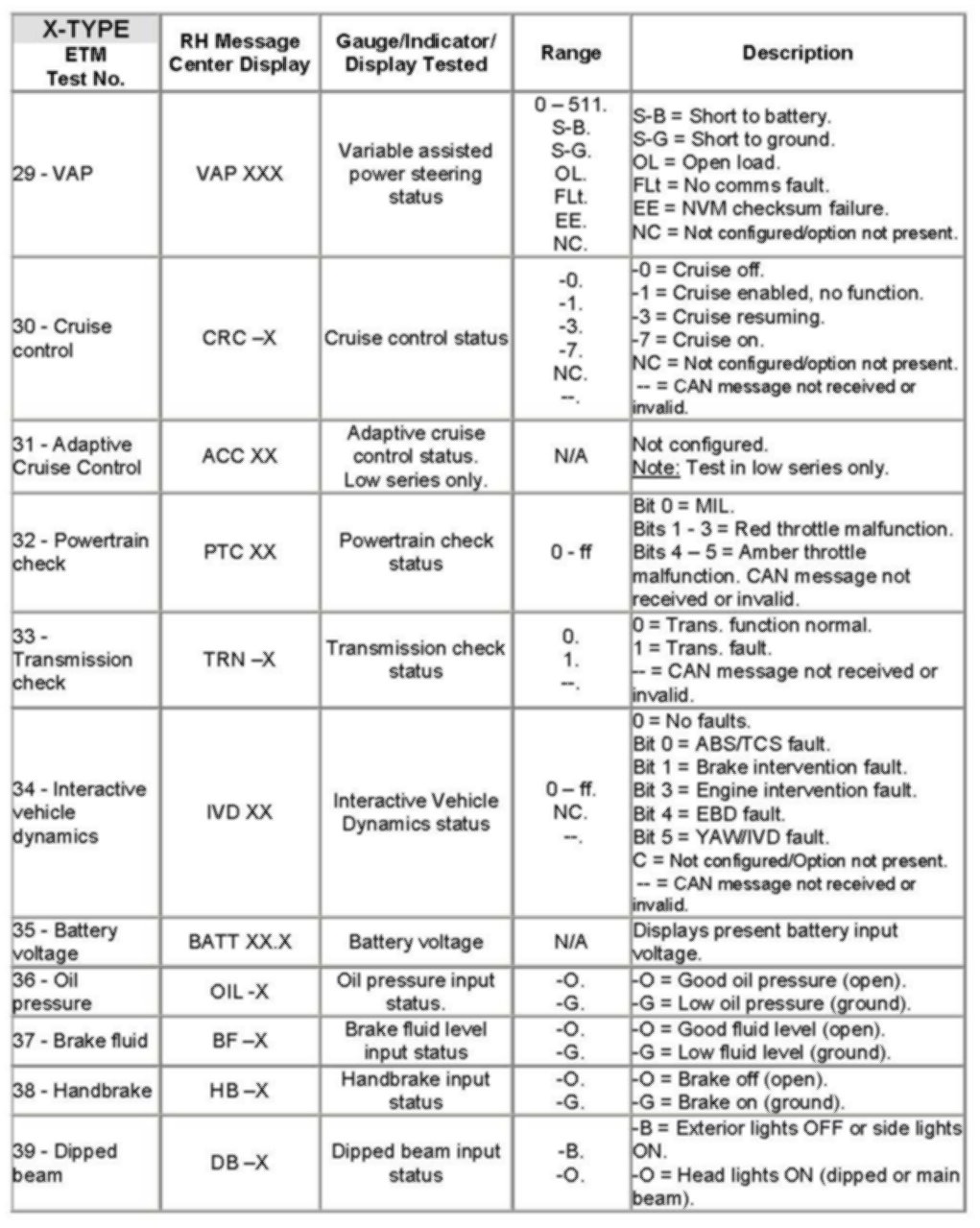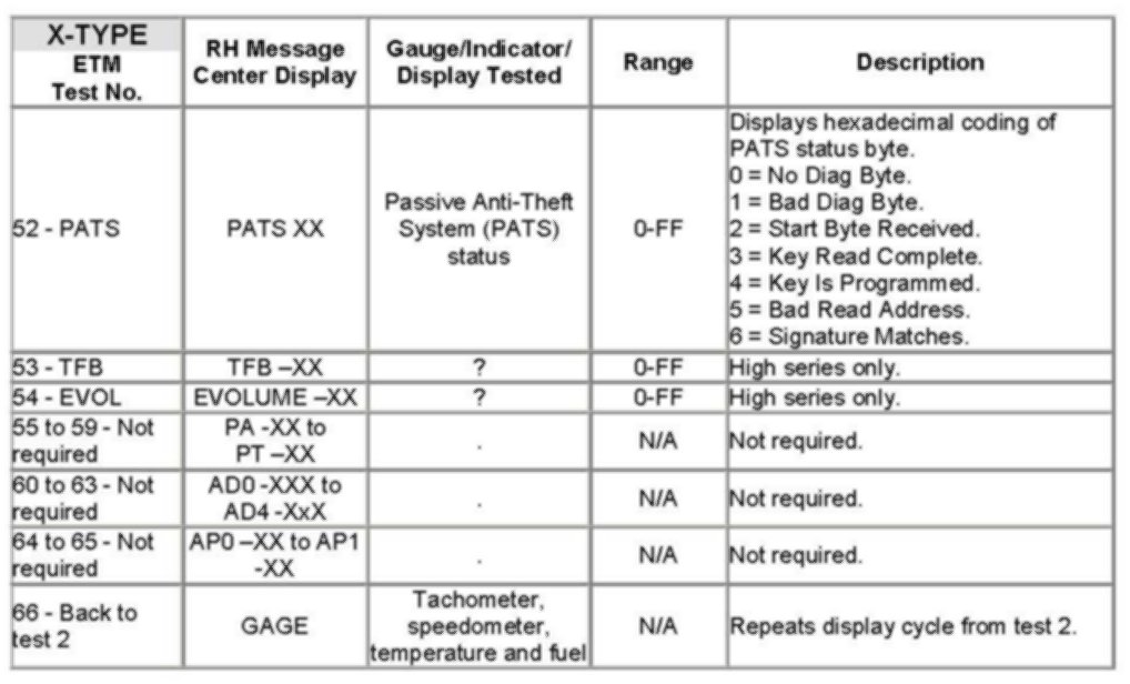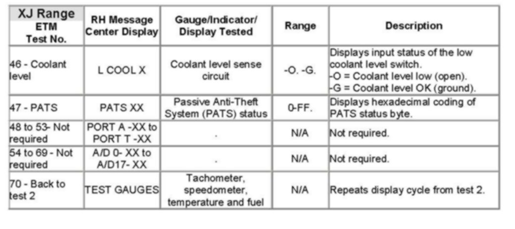 7. Navigate forward through the ETM tests by pressing the trip computer "MLS/KMS" button.