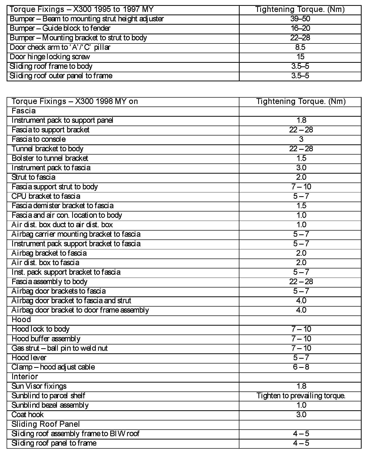 X300 1995 - 1997MY/X300 1998MY on