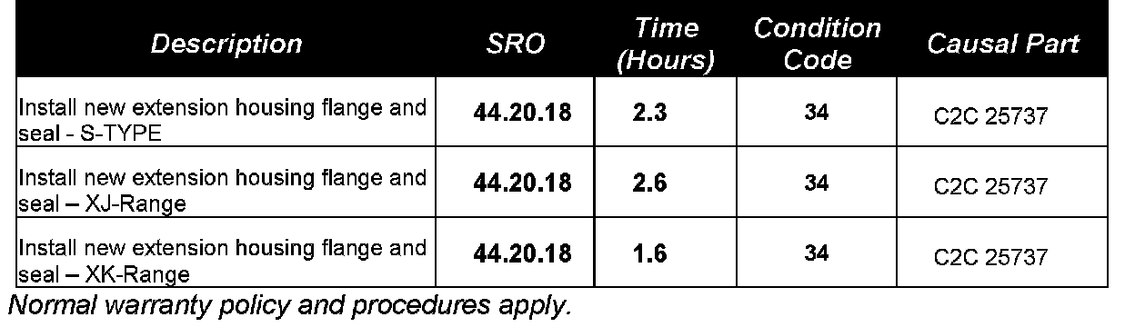 On some of the above model vehicles in the VIN ranges and model years listed a customer may have a concern of a fluid leak from the transmission. This leak may be due to a possible oil leak path past the transmission output shaft seal
