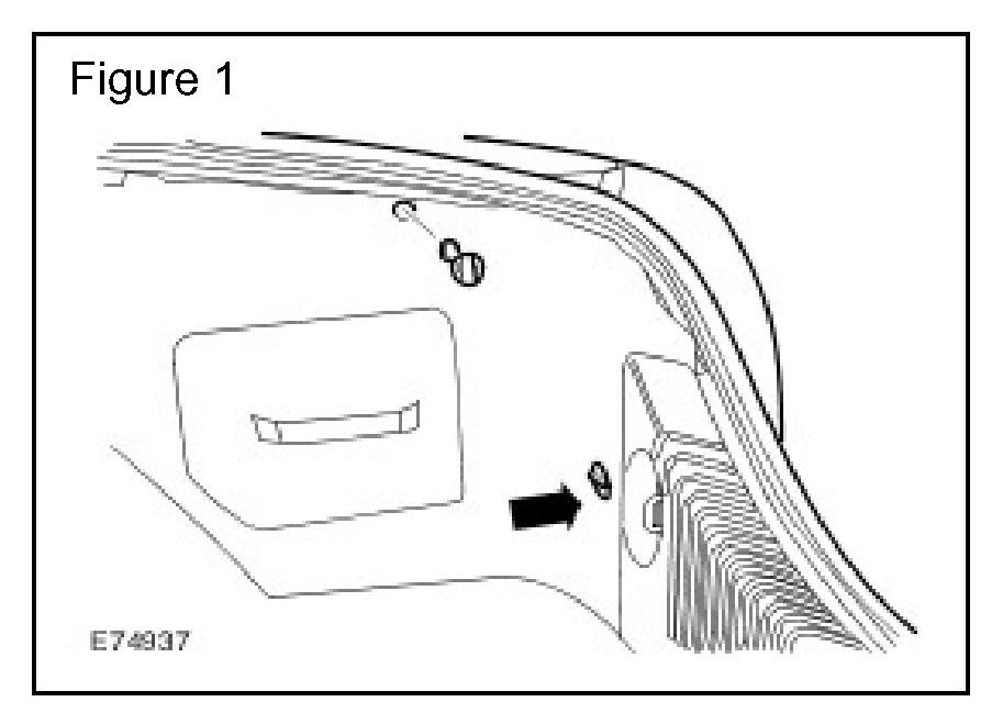 2. Remove the luggage compartment side trim panel retaining clips. (Figure 1)