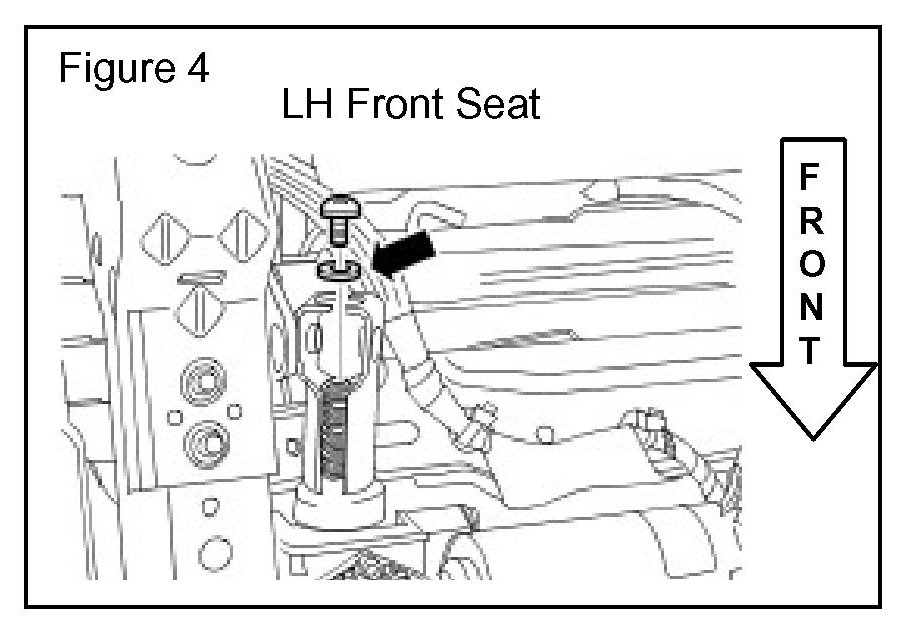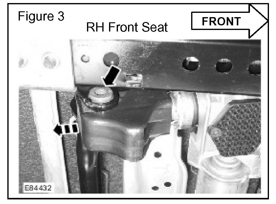 5. Remove the outboard seat pivot bolt. (Figure 2) (FRONT of vehicle indicated by arrow)