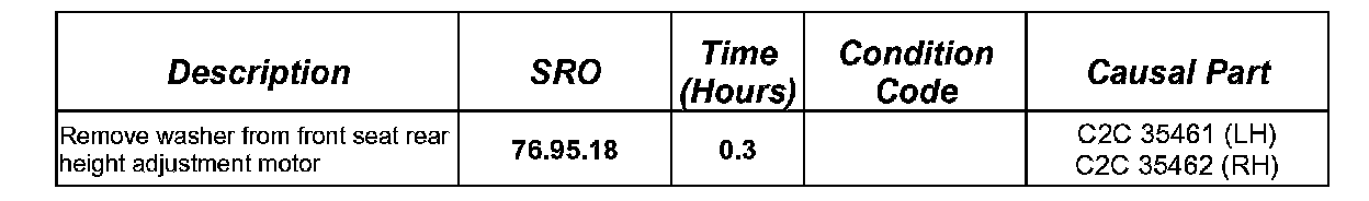 REMOVE METAL WASHER FROM FRONT SEAT REAR HEIGHT ADJUSTMENT MOTOR