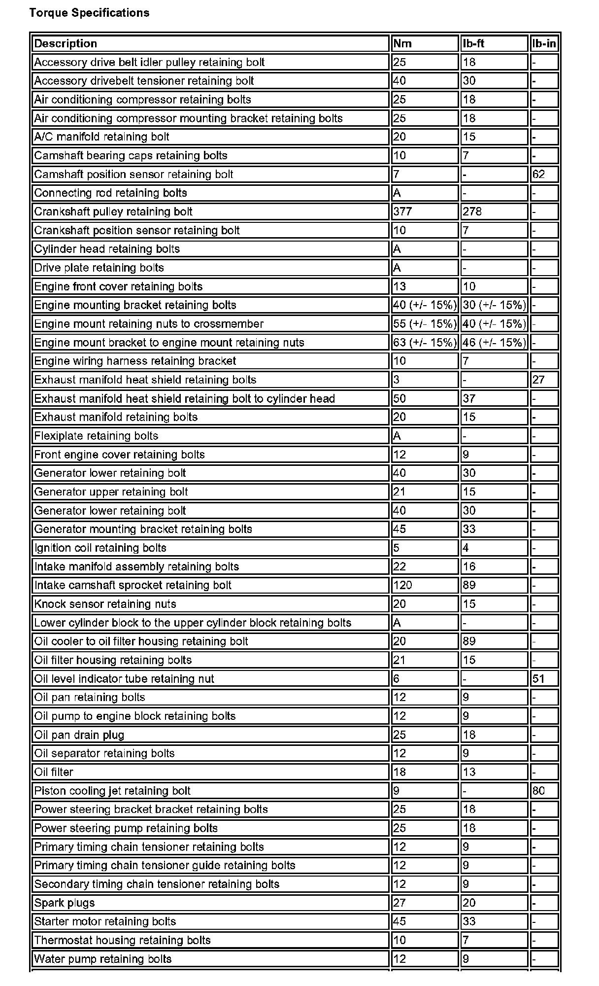 Torque SpecificationsCylinder Head