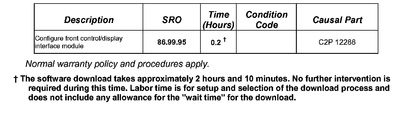 Should a customer report this concern, refer to the Repair Procedure detailed in this bulletin to configure the front control/display interface module.