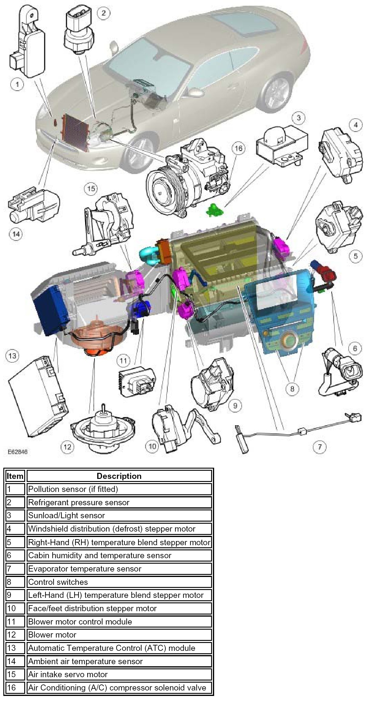 Operation of the blower motor is controlled by the ATC module. The ATC module monitors a feedback voltage from the blower motor control module. In response to the feedback voltage, the ATC module provides a drive signal back to the blower motor control module which is used to regulate the voltage flow across the blower motor and hence regulate blower speed. The blower motor is provided with a battery voltage feed from the blower motor relay, which is located within the auxiliary junction box.