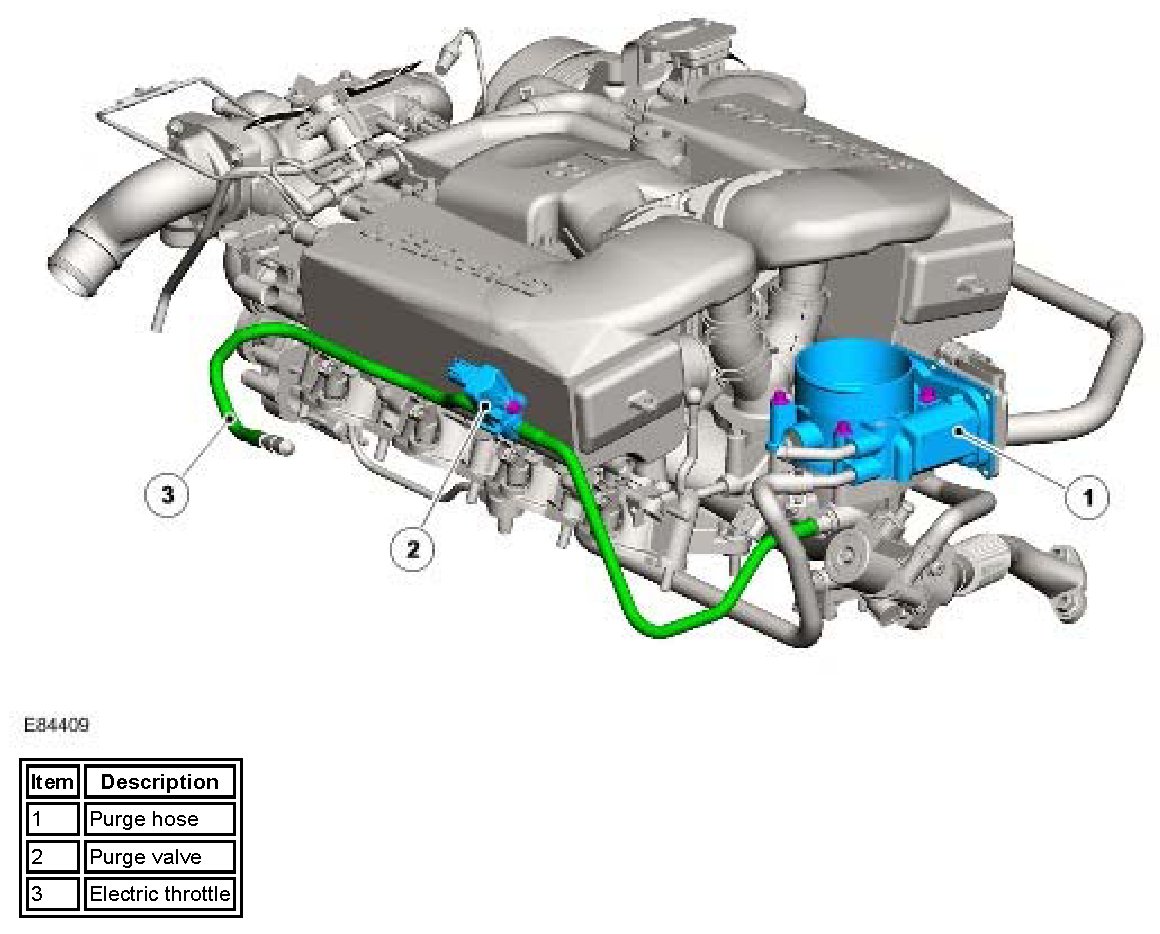 The purge valve is located on the LH side of the engine on a bracket which is attached to the cylinder head. The purge valve is a solenoid operated valve which is closed when de-energized. The purge valve is controlled by a 10Hz PWM signal from the ECM. When the engine operating conditions are correct, the ECM opens the purge valve which causes fuel vapor and fresh air to be drawn through the charcoal cannister. The fresh air is drawn through the charcoal cannister via the fuel tank leakage monitoring pump fresh air vent.