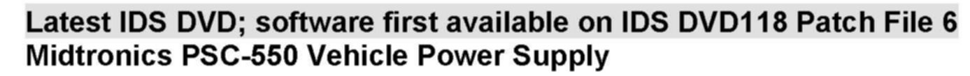 IDS must be loaded with software release DVD118 Patch File 6 or later. *
