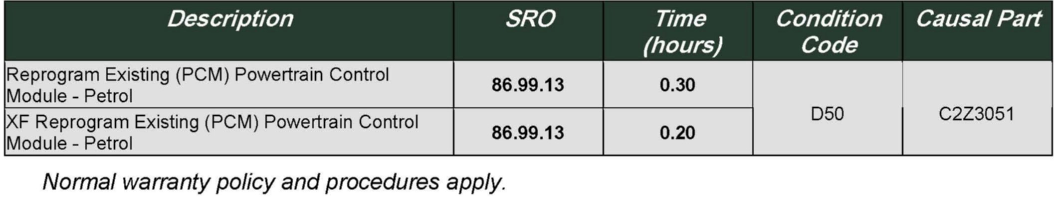 ^ '* Module programming' > 'Configure existing module' > 'Powertrain control module - petrol' (XF, XK) or 'Engine Control Module' (S-TYPE, XJ)*