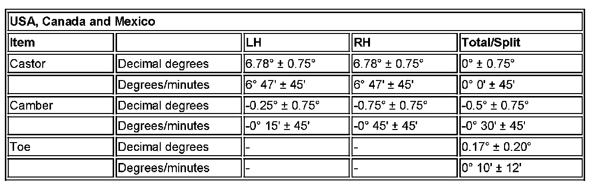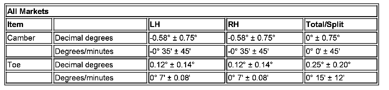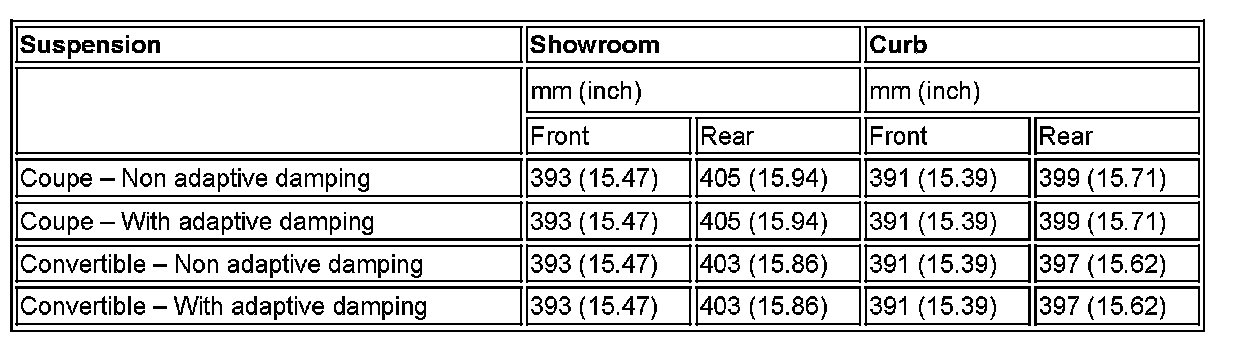 ^ All figures measured at 'showroom' ride height. For additional information, refer to 'Vehicle Ride Height' table below.