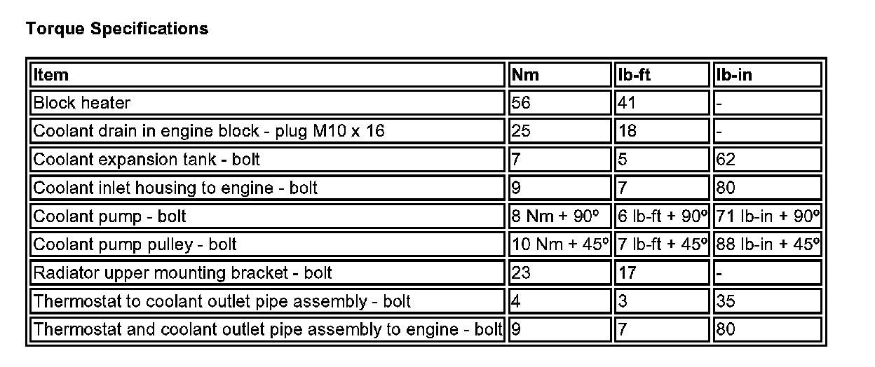 Torque Specifications