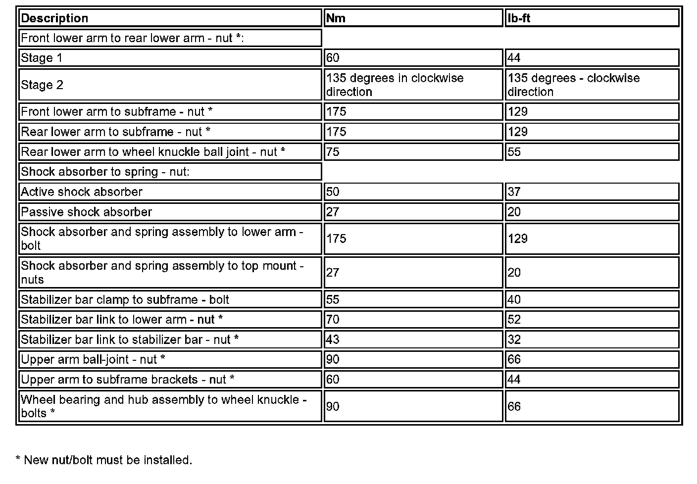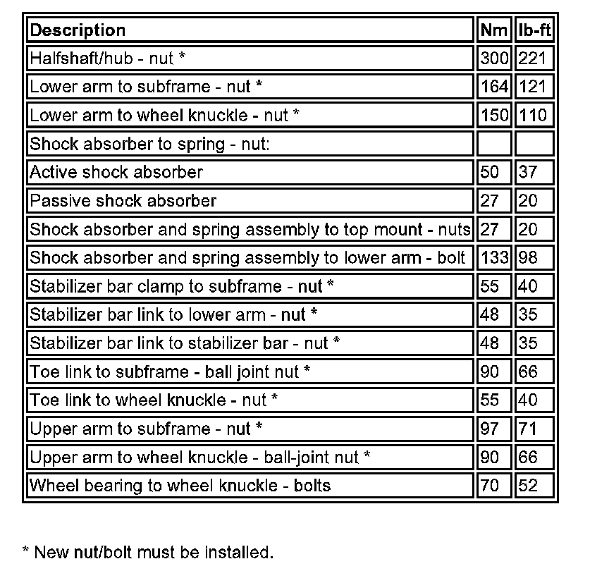 Torque SpecificationsCAUTION: Nuts and bolts must be tightened with the weight of the vehicle on the suspension.
