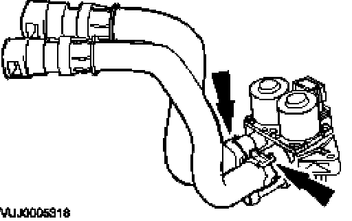 6. Disconnect the dual coolant flow valve bottom hose.
