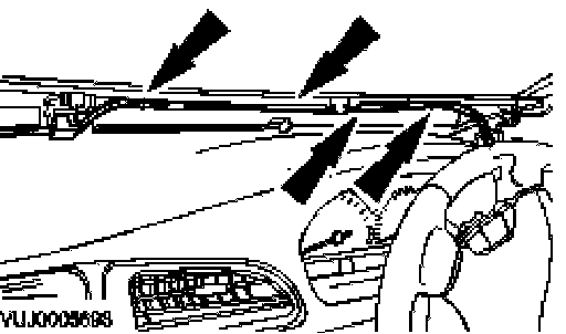 - Locate the instrument panel defroster vent trim panel retaining clips.