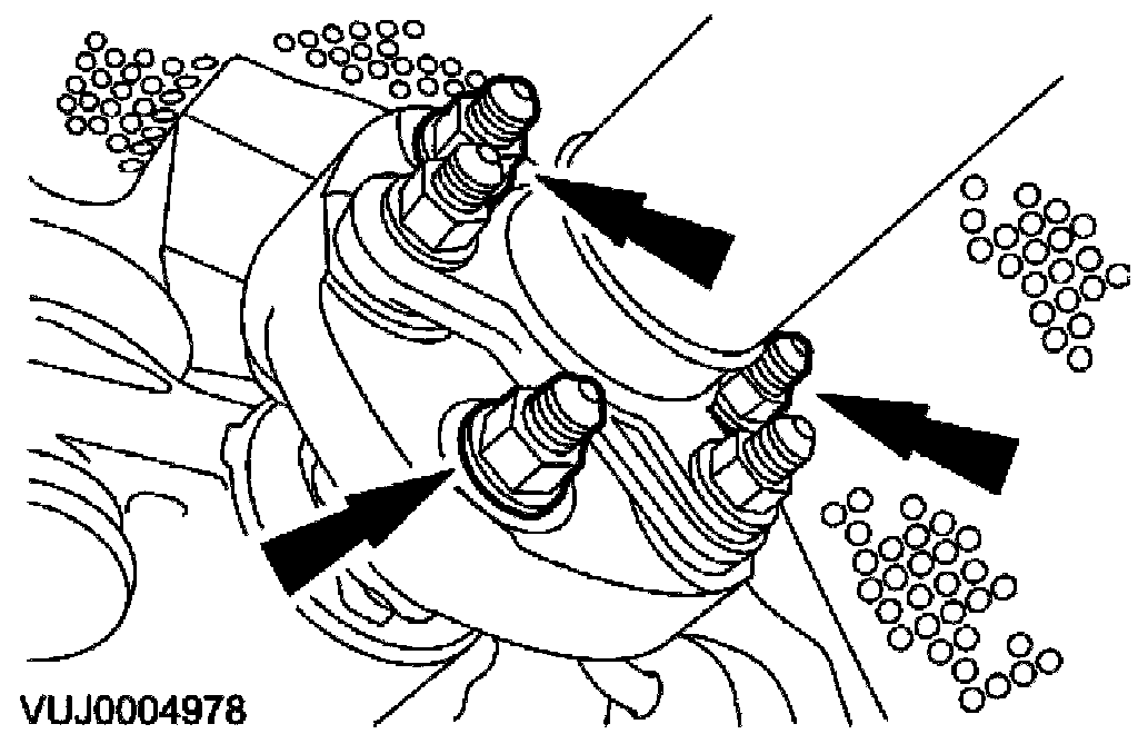 ^ Mark the position of each nut and bolt in relation to the rear drive axle flexible joint.