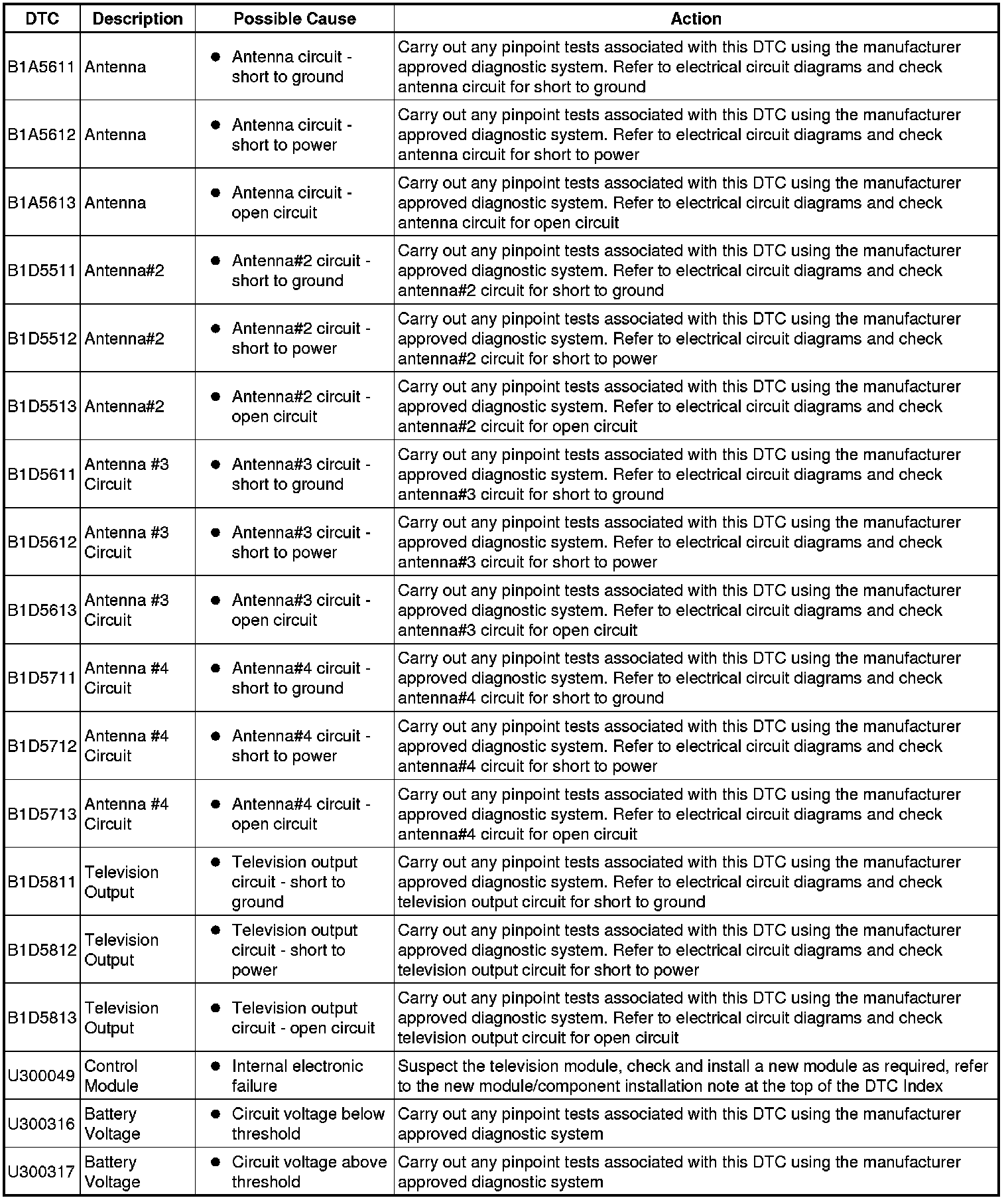 Generic scan tools may not read the codes listed, or may read only five digit codes. Match the five digits from the scan tool to the first five digits of the seven digit code listed to identify the fault (the last two digits give extra information read by the manufacturer-approved diagnostic system).
